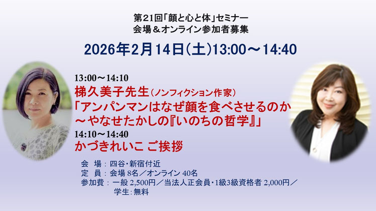 やなせたかし氏と大変に親交の深かった梯先生に「アンパンマンはなぜ顔を食べさせるのか~やなせたかしの『いのちの哲学』」と題してご講演いただきます。